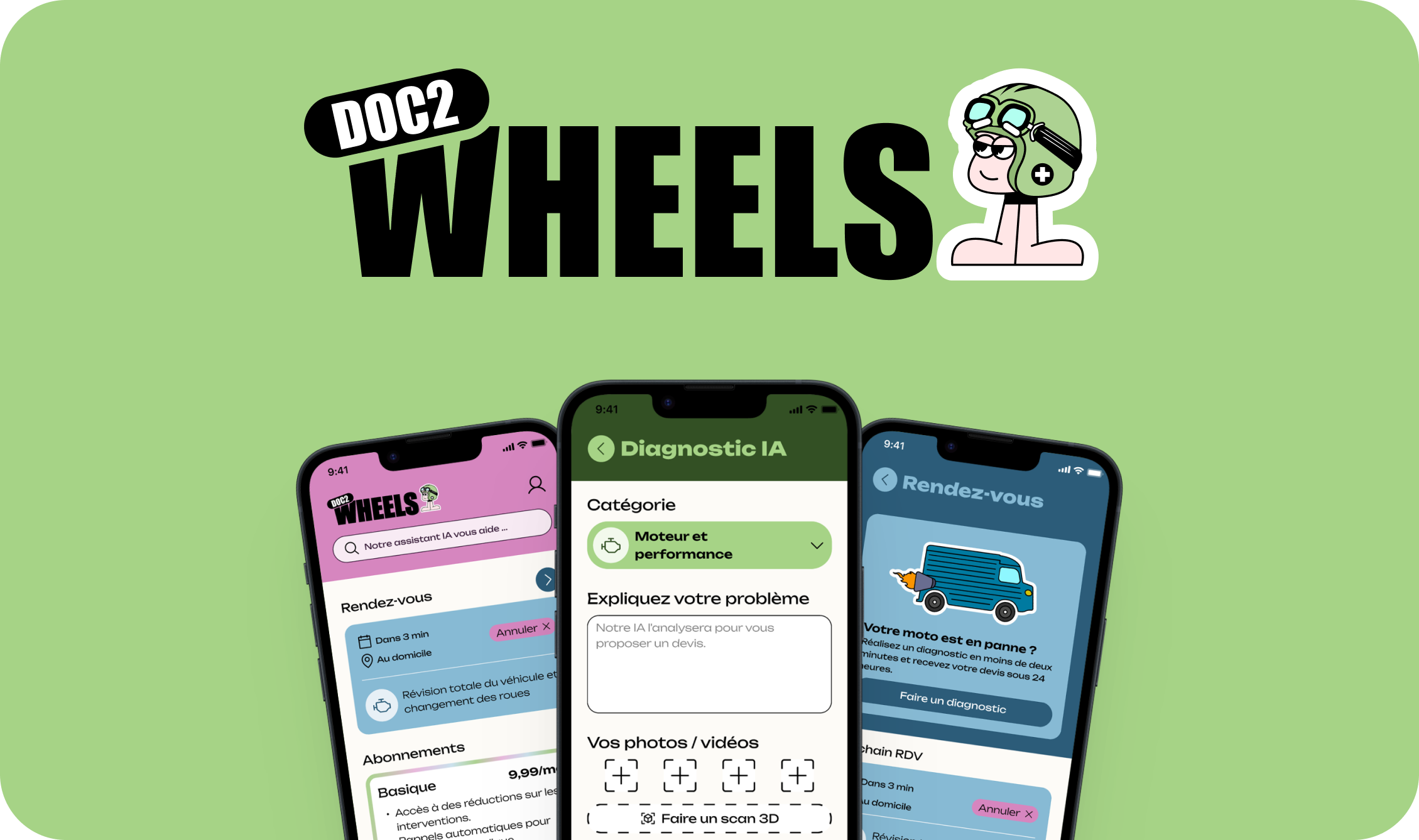 Doc 2 Wheels offre un service mobile de réparation pour motos et scooters, accessible où que vous soyez à domicile, au bureau ou en déplacement via une application dédiée. Découvrez notre vision et notre identité visuelle pour ce projet.